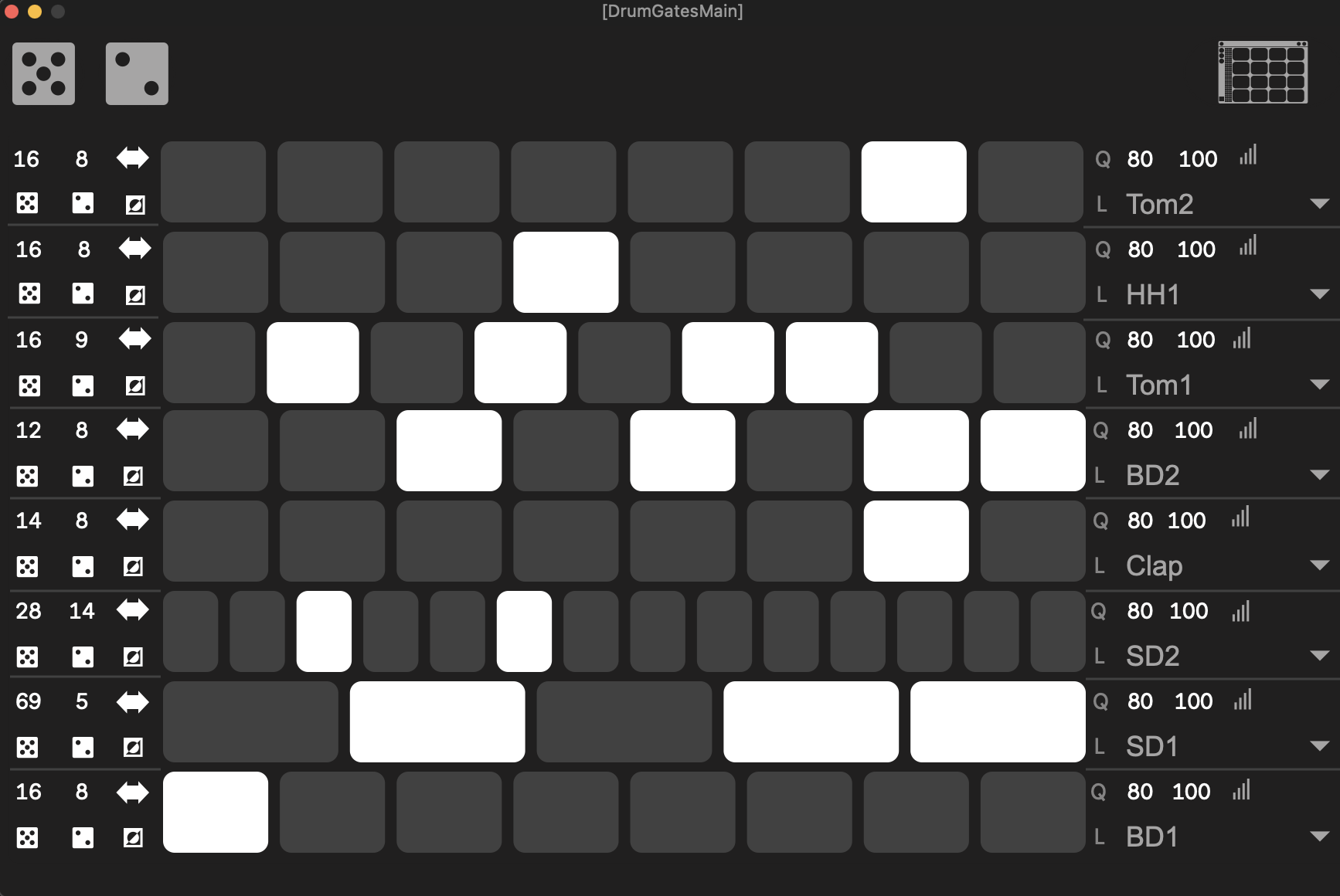 | Description: | 1.1 Added UI scaling DrumGates uses the UI from my 3Gates tool for creating drum patterns. In a popout window, clicking the drum rack icon will populate the menus on the right with the first 16 cells of a drum rack on the track. Clicking on a square will create notes for than cell. Each lane has controls for- Left Side- Total notes created. Length of the pattern to repeat within the total amount. rotate randomize scramble invert pattern Right Side- Q- quantize the notes to the current grid. L- makes note legato. Velocity Range. Drumrack cell to use for pitch. Its makes it pretty quick and easy to make polymeric type patterns. |