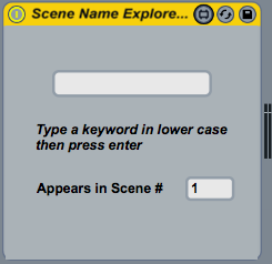 | Description: | Self-explaining device name : search a keyword in scene names, will select the first scene in the set which name contains that keyword. Made this patch for a DJ friend, but I think I'll use it on my next theater / dance project rehearsals. As I'm quite new to max, specially in the live.api area, I'm quite interested to know if this can be optimised. Version 1.10 worked up to 333 scenes. Modified it to go up to 1000 scenes. Comes in a zip file containing the amxd file, a modified standard abstractions, and instructions to install it. Please leave a comment if you download it as the reference links (this site doesn't accept zip files) don't count the downloads. |