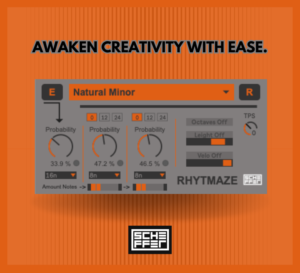 | Description: | https://youtu.be/TqlZd5Rjsvg?si=D96VJu07BV0RjLWi Introducing Rhytmaze, a Max for Live plugin that opens up a world of rhythmic possibilities. With advanced features, you can: - Generate Notes with Probability: Create fundamental notes with different pulses to add dynamism to your compositions. - Parallel Probability 1 and 2: Generate notes according to the chosen scale, adjusting even the octave for more versatility. - 21 Available Scales: Choose from 21 scales to customize the tone of your music. - Note Randomization: Experiment with controlled variations in notes, size, and velocity. - Global Transposition: Easily change the entire composition for global adjustments. - Adjustment of Note Quantity: Control the number of notes in sequences. - Parameter Sending: Manage multiple instances of Rhytmaze on different channels with ease. Unlock the rhythmic potential of your music with Rhytmaze, where probability and creativity come together in the Max for Live universe. |