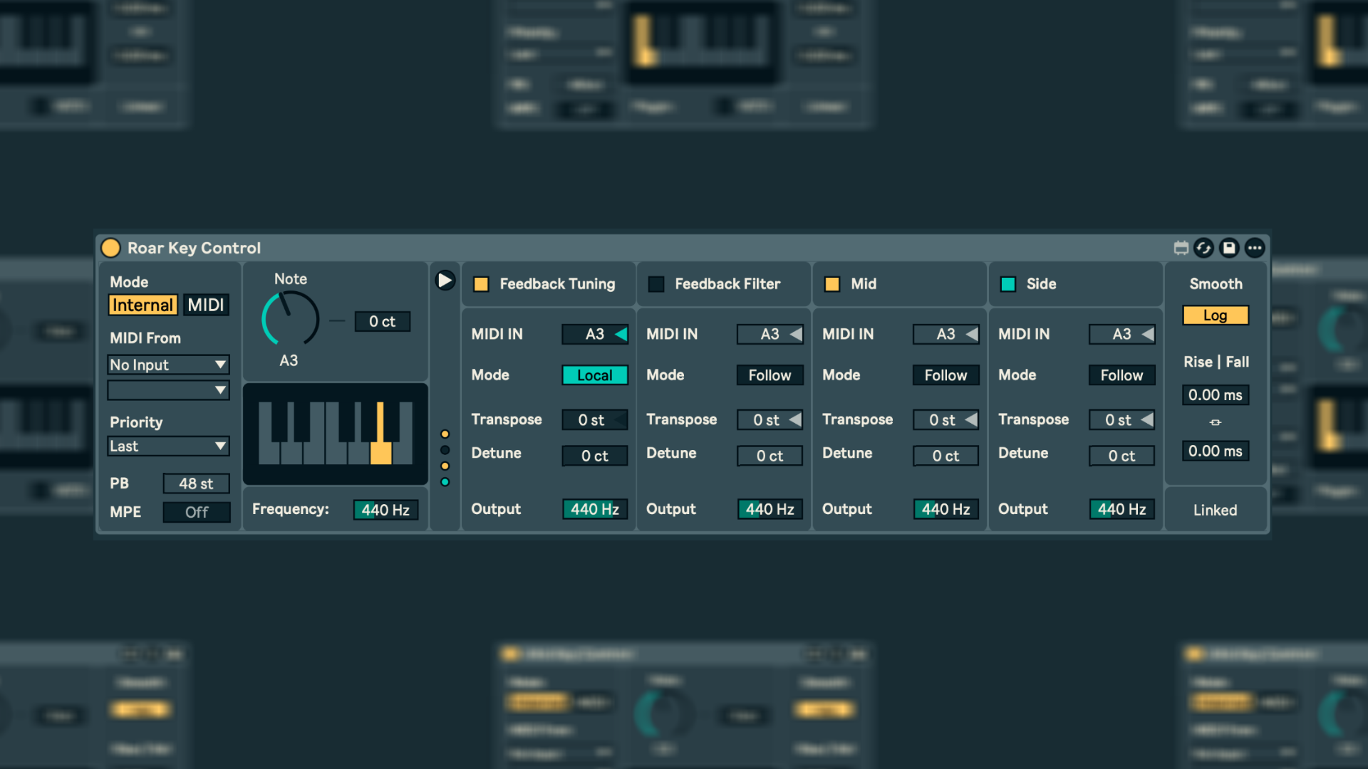 | Description: | The Key Control Bundle contains a series of Max for Live Devices designed to set parameters of various Plugins to exact MIDI note values. The Bundle covers: Roar Auto Filter (Live 12.2 and older versions) Drum Buss Erosion kHs Plugins: Filter, Nonlinear Filter, Comb Filter, Ladder Filter, Ring Mod and Resonator Just place the Key Control device of your choice right in front of one of theses plugins and it automatically pairs with the desired parameter. Demo Video: https://youtu.be/tPK2AsgZ5-s Every Plugin has following Features: -Adjustable Pitchbend Range -Transpose Functionality -Smoothing of the Frequency Changes -Internal Mode for Fixed MIDI to Frequency Values -Detune Parameter -Seperate Options for Linear or Logarithmic Smoothing -Accepts MPE Pitchbend Information -Priority Mode for incoming MIDI Information -Displays Information if Device is linked or not Additional Information: Roar Key Control lets you control various parameters, which can be toggled on/off individually, it also lets you control the Feedback Tuning (This is also possible natively since 12.2, but this doesn't cover smoothing, detune or Pitchbend options, like Roar Key Control does) kHs Key Control lets you switch between Vst2 or Vst3 Mode (which changes the remote controlled parameter, so make sure you use the correct configuration) The Key Control Bundle is FREE for Download, so Its accessible for everyone making music with Ableton. Nevertheless quite a lot of work went in to the design of this Devices, so if you wanna support my work and the continuous support for existing plugins, every donation is very much appreciated. As always if you want to stay updated of new devices, have requests or just want to get in touch you should consider follow my IG, always a pleasure to here from you: https://www.instagram.com/stevon.av/ |