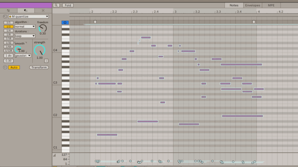 | Description: | This is a quantization tool with additional options intended to preserve a certain amount of intentional timing deviation. Built as a request. First version, still subject to change. Explanations: https://www.youtube.com/watch?v=PZhPpFshrVY |
