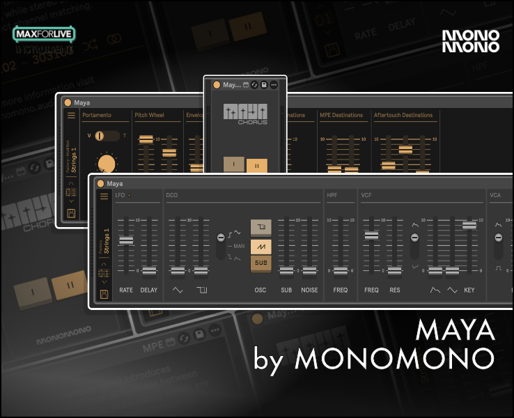 | Description: | CLASSIC ANALOG WARMTH MEETS MODERN POLYPHONY AND MPE IN THIS LUSH MAXFORLIVE SYNTH. Maya by Monomono is a 6-voice polyphonic synthesizer for Ableton Live that blends the soul of vintage analog synths with modern flexibility. Featuring authentic Juno-inspired oscillators, a resonant VCF, and a lush built-in chorus, Maya excels at warm pads, cutting leads, and rich textures. Its intuitive interface, stereo note spread, and MPE support make it ideal for expressive, inspiring performances. With a diverse preset collection and the standalone chorus device included, Maya lets you dive right into creating lush, vintage-flavored sounds that sit beautifully in your mix. - 6-voice polyphonic MaxforLive synthesizer - Warm, vintage-inspired sound with saw, square, sub & noise sources - Built-in chorus with three classic modes - Stereo note spread for spacious mixes - MPE & aftertouch support for expressive play - Includes a standalone Chorus device for any track - Comes loaded with diverse presets and easy import/export - Compatible with Push 3 Standalone Get Maya today and bring timeless synth character into your Ableton Live sessions. |
