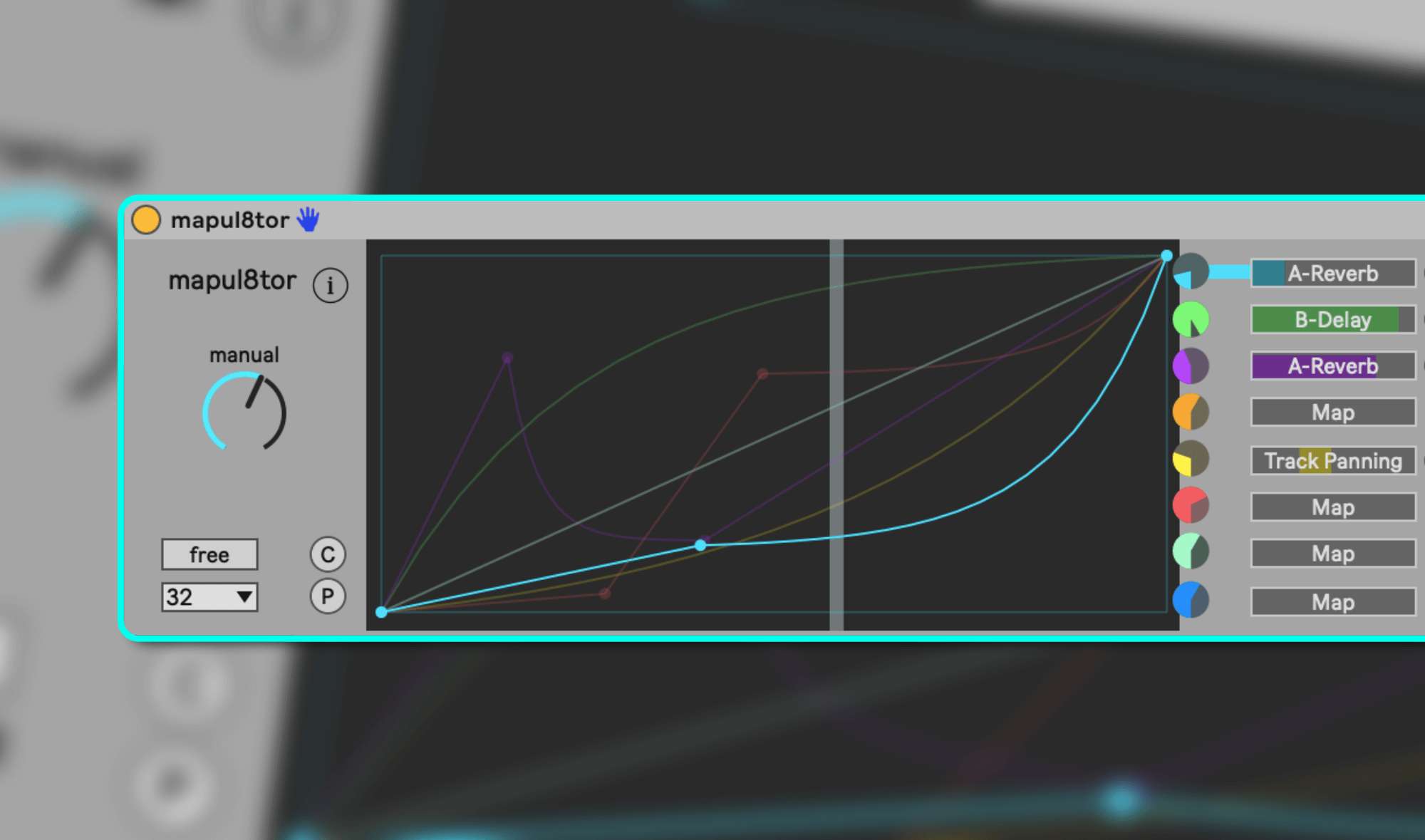 Description: maps one control to up to eight parameters in Ableton Live. Each target has its own editable curve, so a single knob (or automation lane) can drive different parameters in different ways. It’s a continuation of the original Mapulator concept by Jonathan Kops (BentoSan).