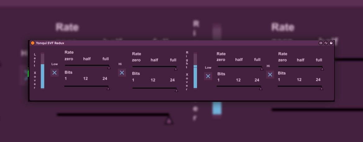 | Description: | Dual stereo degrader wth separate parameters for hi and lows on both left and right channel. |
