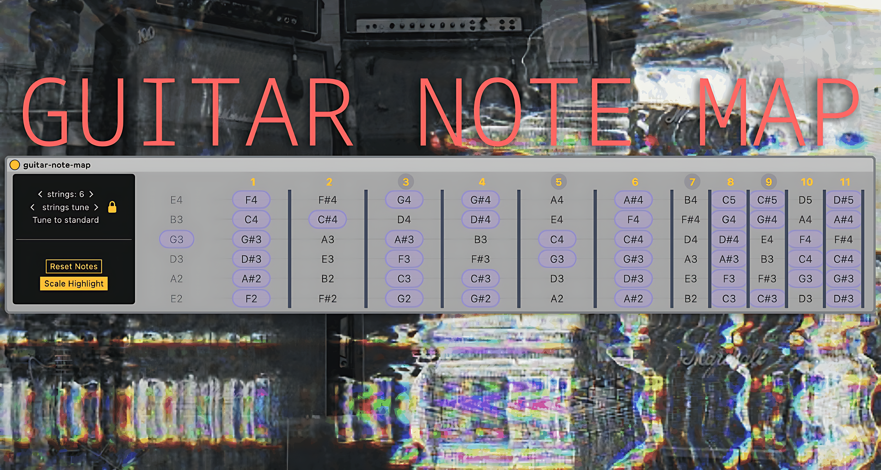 | Description: | Guitar Note Map is a Max for Live MIDI device that converts your MIDI notes into a real-time guitar fretboard view. It’s designed for guitarists and producers who want to instantly see where notes, chords or scales land on the neck — whether you're composing, practicing or translating keyboard parts to guitar. Key Features: Customizable Fretboard Layout — Choose number of strings (4–8) and set any tuning: standard, drop, open tunings or baritone setups. Live MIDI Note Display — Works with MIDI clips or live input, showing single notes or full chords on the neck. Hover to Highlight Matching Notes — Instantly visualize octaves and identical pitches across the fretboard. Ableton Scale Integration — Automatically syncs with the selected Project Scale, marking in-scale vs. out-of-scale notes. Clean Visual Interface — Lightweight, fast and distraction-free — works as a permanent reference panel while you play or write. Perfect for learning fretboard logic, experimenting with voicings, or staying in key while composing inside Ableton. |