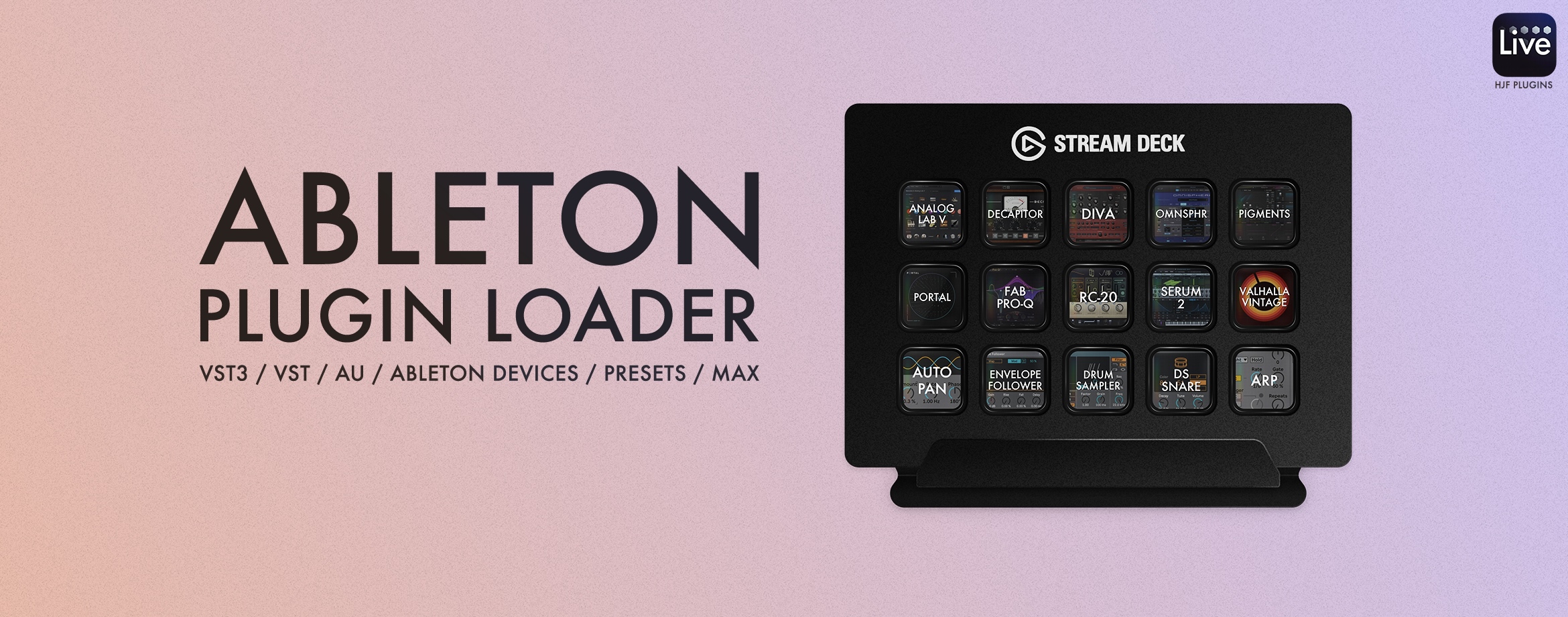 | Description: | For MacOS + Windows! Finding the right device or plugin in Ableton can take time, and nothing kills creativity faster than searching through long plugin folders. Music is about flow, staying creative, and acting on inspiration before it disappears. This Stream Deck plugin solves exactly that. With a single tap on your Stream Deck, you can instantly load all your VST3, VST, AU plugins, Ableton devices, presets, and Max for Live tools straight into the selected Ableton track. No more scrolling, searching, or breaking your focus. Just press and create! This is a tool I always wished existed, and honestly, it has become a must-have in my own workflow. I built it because I kept wasting time looking for the same instruments and effects. Now, everything I need is literally one button away. Every producer I’ve shown this to has been blown away by the speed and simplicity… myself included! How does it work? Very simple: This tool communicates with Ableton via a remote script using a lightweight local UDP connection (localhost only), which handles all device loading behind the scenes. No external network connections are used. 1) After installing the plugin; Restart Ableton, go to Settings → Link, Tempo & MIDI, and select HJF Plugins in the Control Surface dropdown 2) Open the Stream Deck app, drag the Ableton Plugin action onto a key, and select a device or plugin from the list That’s it, everything is set up! This version includes all built-in Ableton device icons. Optional icon packs for VST, VST3 and AU plugins are available soon in Marketplace for those who want every plugin to automatically display with a clean visual label, super helpful, fast to recognise, and extremely tidy in use. Once installed, the connection between Stream Deck and Ableton is extremely fast, you can browse or trigger plugins instantly. Key Highlights: - Load plugins instantly; instruments, audio effects, MIDI effects, Max for Live devices, presets - Smart filtering; choose by type (VST3, AU, Audio FX, Instruments, etc.) - Search by name; find exactly what you need in seconds - Keep your flow; no more hunting in Ableton’s browser - Icons; all Ableton icons included + 10 most-used synths & effects* - Perfect for studio and live use - Easy installation Whether you’re producing in the studio or performing live, this tool keeps your hands on the music, not on your mouse. *Included extra icons: Analog Lab V, Diva, Omnisphere, Pigments, Serum2, Fab Pro-Q, RC-20, Decapitator, Portal and Valhalla Vintage Verb. Extra icons will be soon available in Marketplace. ** Compatible & tested with Ableton Live 12.1.10 and above (not with version 12.1). Ableton 11 works, but is not officially tested. |