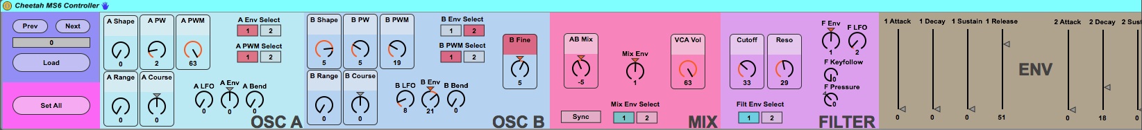 | Description: | Total control of your Cheetah MS6 synthesizer (with maad firmware upgrade). Almost all parameters mapped. Program change. 80's colour scheme! Buy the firmware upgrade here: http://www.maad.net/ms6/ |