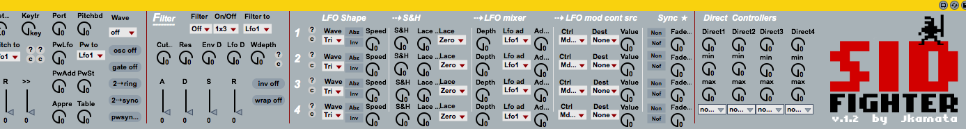 | Description: | Hi folks, Here's my first m4l patch ive ever done.. :) This is a combined cc' & sysex controller for the Elektron Sidstation. To get full acces to all controllers the Sidstation must be in v.R33. To get v.R33 go here: http://www.mediafire.com/?t1u6ecjf5nq78v3 REMEMBER TO READ THE INSTRUCTIONS Furthermore to be able to send sysex ive implemented Katsuhiro Chiba's Midi-Udp-Bridge http://www.audiooo.com/jp/download/midi-udp-bridge.zip I tried to use the lh_midiout - but it gets greyed out - so I lost patience and just went with what worked for me. This controller is without the Direct Control & Direct Control Assignement and min max value - So in order to make this work - roll your version back or forth to r.33 - download the udp-midi-bridge -and set it to the correct midiout port - as well as in Live. Happy Twiddlíng! What I would love to implement in the future is a parameter randomizer for each osc and lfo plus the ability to reset parameters, preset handling. .. I also would love to see a table controller implemented as well but my sysex/max4live knowledge is on noob level - so if anybody wants to give it a try please do so. cheers! ----------------------------------------------------------- UPDATE: v.1.1: Now features parameter randomisers and parameter reset - displayed as (?) and (c) - for each lfo 1,2,3,4 each osc 1,2,3 and the filter Futhermore each osc has two! randomisers and resetters one randomiser for all parameters one resetter for all parameters and one that randomises everything except transpose, detune, keytrack, osc on/off and the envelope. and one resetter for everything except as above -except osc on/off! By having it this way - one can afford to be a bit more 'daring in randomising each osc - if the main part of the osc is set to a satisfying degree - and you dont wanna mess it up - then use the second randomiser! Enjoy! -------------------------------------------------------- UPDATE v.1.2 Fixed some minor issues: for some wanki reason some of the patching to osc1 was missing (srry bout that) Direct Controllers is now mapped, pw resets to 64. |