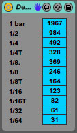 | Description: | This is a simple tool to display useful delay times based on the current session tempo. |