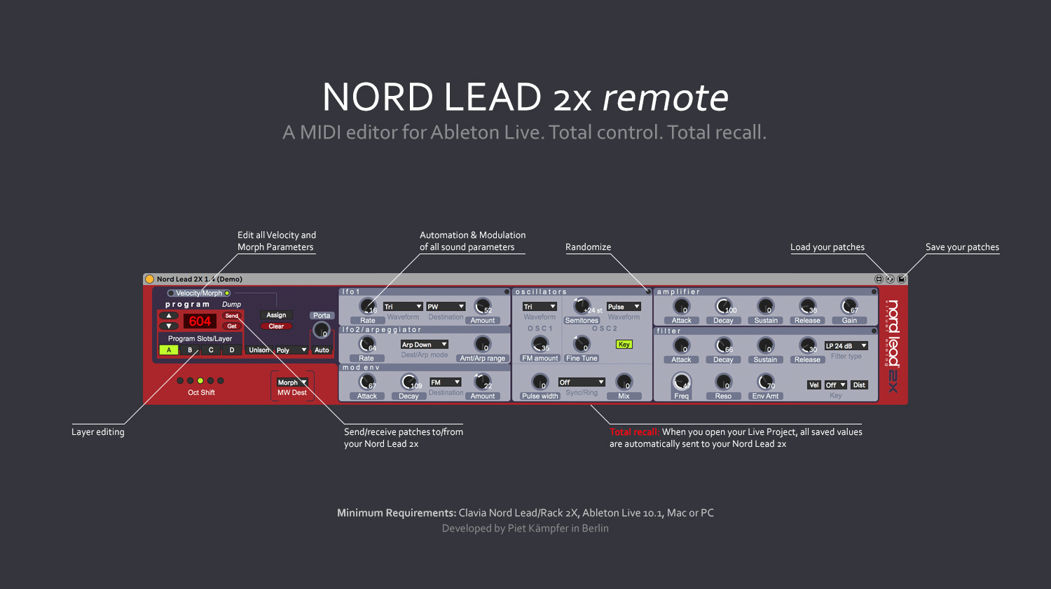 Cool, but... my reKon audio VST-AU Lead 2 Editor (http://rekonaudio.com) software already does all this, and it works in all the major VST/AU based DAW hosts out there. It also does not require M4L when used in Live. Yours only works with M4L and Live. Of course, yours is free though. So, that's a bonus for M4L + Lead 2x users I suppose, and it is kind of you to have shared your work.