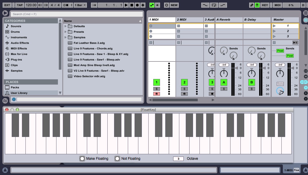| Description: | This Max4Live Plugin shows a keyboard and the actually played keys on screen. This way, you can analyze and show scales and chords. FloatKey can be permanently set to "floating" and will therefore show as permanent layer above Ableton Live. Octaves can be set as well. |