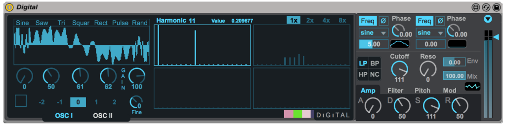 Description: Max for Cats presents DiGiTAL, a powerful polyphonic synth that fuses aspects of additive, wavetable, frequency modulation and subtractive synthesis. DiGiTAL is distinctly designed for creating new sounds and provides a comprehensive set of controls expressly for this purpose.