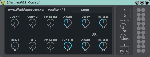 | Description: | M4L control for the Sherman Filter Bank 2 - Bi-directional feedback - Preset section - Preset morphing between two presets with looping Please, If you use it, rate it, Thanks !! Check my others Device : http://www.maxforlive.com/library/index.php?by=any&q=veedjee |