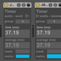 | Description: | This is a set of 4 devices that allow you to check latency across your live set. The devices communicate with each other to determine how long it takes for a MIDI or Audio pulse to travel from one to the next, there are 2 send devices (1 for MIDI, 1 for audio) and 2 receive devices (1 for MIDI, 1 for audio). The send device sends a signal and the receive device reports how much time it took for the signal to arrive, they will both display the result and with several pulses they’ll show an average of all the results so far. You can use several pairs of devices across your set by assigning each pair a unique group number, also instead of using the in-built metronomes you can send your own MIDI or audio streams through. Any audio needs to start and return to complete silence for the audio timers to register properly. You can have send and receive devices on different tracks and you can time the latency between a MIDI send and an audio receive if you have an instrument in between. |