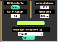 Description: Allows you to assign a CC message to a pitch bend, with assignable length and distance, so you can trigger a pitch bend from a button, rather than the typical (if unavailable) slider. The ramp will move up as you're holding down, then back to "middle" (64) or "bottom" (0) upon your release of the button.