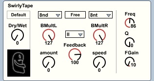 | Description: | Emulates a Tape delay It features - Independent or slaved Left/Right Channel Beat Synced lengths - Infinite feedback - Bandpass filter with adaptive Q (Resonance) and Gain - Auto wobbling - Parallel or cross (similar to pingpong) feedback routing quick demo video @ https://youtu.be/puGR4UcyNVY |