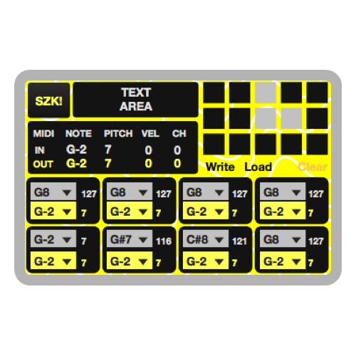 | Description: | szk.8NOTESCONVERTER is a midi effect made to convert notes coming from midi source (keyboard, surface control, pads, etc …) to a midi instrument. It allow you to quickly identify the received notes and to convert them. No need to modify the source preferences. This device has been thought to work live with an Akai LPD8 and/or various midi pads (ex : Roland SPD, Octapad etc …). ______________________________________________________ UPDATES #Version 1.1 It includes now a text and presets areas managed by writing/loading .maxpresets files. ______________________________________________________ Device location Put the device as a midi effect before your instrument on a midi track. In / Out Just monitor the midi notes in and check the midi notes out conversion. The midi channel is only indicated in a brief monitoring purpose (midi routing inside Ableton can be tricky). Velocity Velocity is by-passed and stays identical from in to out. Notes Menus Quick set the note received (send by your controler) you want to be converted and transmitted to the instrument. Eight converters are available, related to the typical hardware design of pads. Grey menus ▼ notes received Yellow menus ▼ notes transmitted For more information please visit : http://m4l.szk.fr |