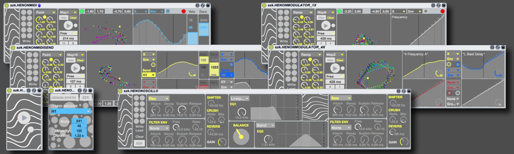 These Modules include all the functions of the HENONSYNTH, but in a independant way, and features Envelope Modulators options to control Live's parameters with custom automations.
