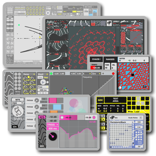 | Description: | A collection of 8x devices and midi instruments dedicated to autogenerative music and Live’s parameters modulations. Randomizer, Fractal synth, Strange Attractors patterns, Modulation with audio input, this packs includes useful devices to explore chaos, automations and live interactions. Included devices : ••• 3x AUTO GENERATIVE MIDI INSTRUMENTS ••• ∿GINGERBREADSYNTH — https://www.youtube.com/watch?v=ROv5Qk41eq4 — An auto-evolutive fractal synth based on the Gingerbreadman algorithm. Patterns can be generated and repeated at different scales allowing you to produce a wide range of musical sequences. The synth includes 3 oscillators, 1 ADSR and a Effect Chain (Bitcrusher, Reverb and Filter). A Note Scaler allows you to easy create melodies to fit your project. Grips with Envelopes make the synth semi-modular and introduce the possibility to play with retro-feedback on the synth parameters, or to modulate effects and devices on other tracks. A Midi Send feature is included to send midi notes to other midi Instruments (Midi Receiver included). Gingerbreadsynth is ultra cool ! ∿HENONSYNTH — https://www.youtube.com/watch?v=vACR8aRfdRE — A complex Synth Instrument and Modulator based on quadratic mapping of strange attractors. The synth’s algorithm generates a quasi-unlimited quantity of strange attractors that allow you to control different modules and to combine them. Three Modules are available : a 2x Oscillators Synthetizer, a MIDI Sender and an Ableton Live API’s Controler. Calculated values from the quadratic system are used to feed these Modules to create a wide range of auto-generated sounds. ∿RANDOMNOTES — https://www.youtube.com/watch?v=nIvq1gts7GQ — This device is made to generate random midi notes at various speed. Set the generator’s tempo, define different ranges for the notes you want to be played then hit the button ! You can introduce more chaos with an additional random delay range. Then you can create glich effects by playing with the mouse over the x-y area. ••• 3x PARAMETER MODULATOR-LFO EFFECTS ••• ∿HENONMODULATOR1x — https://www.youtube.com/watch?v=QIyWfBJsUzM — An Audio Effect part of the HENONMODULES pack that allows you to take control of Live's parameters and modulate them with the attractors. ∿TWEEKER — https://www.youtube.com/watch?v=qEa-8qRFPPg — Grip Live’s parameter on a knob, draw his behaviour’s automation and trigg it in function of the audio signal input ! Plug any instrument (guitar, bass, keyboard, voice etc…) and play with effects ! ∿SHAKER — https://www.youtube.com/watch?v=w07gGwtxFmc — Shaker allows you to grip Live's parameter on knobs and change their values randomly to create automated variations, from fine modulations to total chaotic strange sounds. Shaking ! One Shaker can grip up to 5 parameters. On a same Shaker you can grip any parameters located on different places of your Live set. Use many Shaker for complex configurations ! ••• 2x UTILITY MIDI EFFECTS ••• ∿8NOTESCONVERTER Midi note converter / 8 notes converted / Simply check which note is coming and choose which note will be played. Made to ease you work with external midi controler without changing presets. ∿SCALENOTES A minimalist device to scale Midi notes. It reproduces the presets available on the Ableton Live Scale effect, and new scalings can be drawn. You can also transpose notes from -36 st to + 36 st. A preset module can be used to write/load .maxpresets files. Documentation is available within the devices. ______________________________________________________ For more information please visit : http://m4l.szk.fr/ ______________________________________________________ |