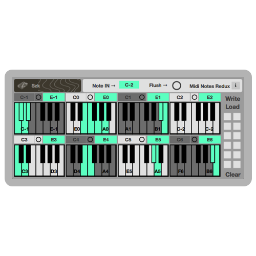 | Description: | Simplify your Midi Keyboard ! Midi Notes Redux allows you to select different midi notes and reduce them to one single one. Perfect to simplify your mapping for easy creation and live performance. Up to 8 groups of notes can be reduced to single ones. For each mini-keyboard : # Top left : Select an offset for the little keyboard (it defines the first note on the keyboard). # Select two notes on the keyboard that will be the minimum Midi Value / lowest note and max / highest of the interval that will be reduced. Selecting more than two notes won’t change the group that will be defined by the interval between min and max. Even they are not selected, ALL notes between the min/max boundaries will belong to the group. # Top right : Select the single note that will be played when incoming note in falls into the group. # Click on individual buttons to reset the group. IMPORTANT : # Take care of common notes between different groups. # Use the Flush button to refresh note on / off if Notes don’t stop properly. # Presets won’t be saved into your Live set, use write/load to manage .maxpresets files. ______________________________________________________ All our other devices on Gumroad and Sellfy : https://gumroad.com/szkdevices https://sellfy.com/szkdevices ______________________________________________________ For more information please visit : http://m4l.szk.fr/ ______________________________________________________ |