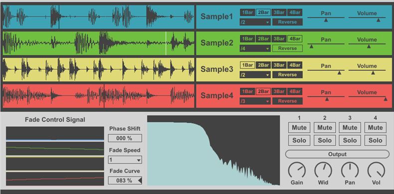| Description: | crossfading 4 audio samples update: v1.1 added pitch shifter added EQ fixed issue of multiple instance http://hyakken.moo.jp/WordPress/sample-fader-updatev1-1/ |
