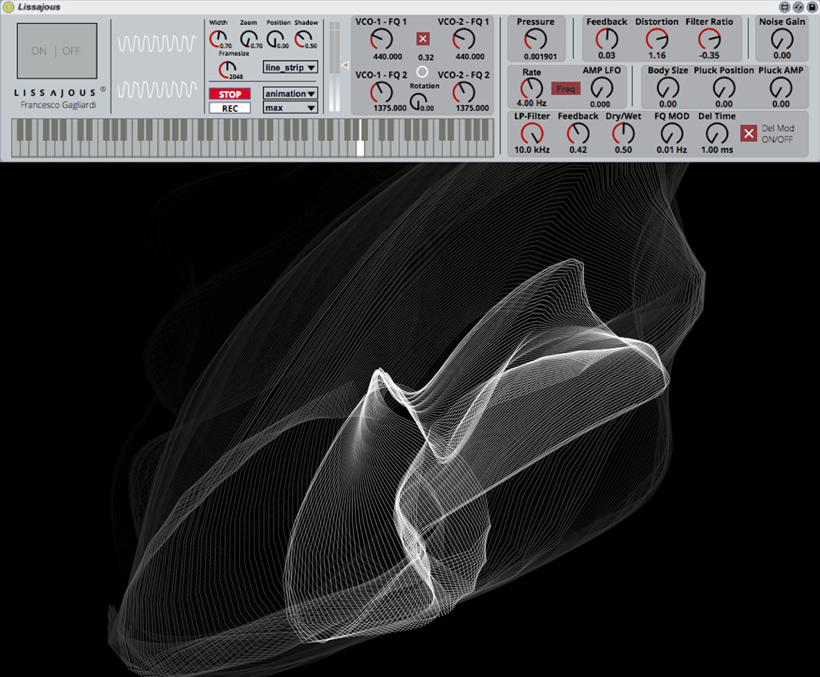 Description: Lissajous is a real-time audio reactive graphics device built in Max/MSP and inspired by the work of Jules Antoine Lissajous.