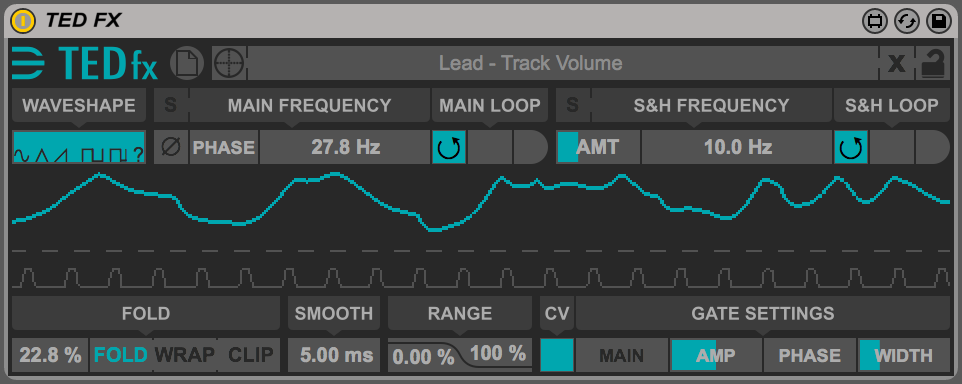 | Description: | JUST THE BEST LFO EFFECT OUT THERE TED FX is the effect version of our Max For Live highly editable LFO and function generator. With TED’s signal, you can modulate any parameter in Ableton Live: from other devices’s parameter, to Live’s UI, to any third party plug-in. TED is very easy to use: just click the “select” toggle, then click the parameter in your Ableton Live set to apply its modulation signal. It is composed of three main areas: the main oscillator, with 6 morphable waveforms, a sample and hold circuit with adjustable amount, and an effect section. The effect section contains a wave-folding effect that may act as wave-folder, wave-wrapper or wave-clipper, a smoothing effect and a scalable output, where you can select the minimum and the maximum range of modulation. TED FX is also CV GATE compatible, to use with your CV GATE compatible hardware, as a modular system. Please note that in order to use the CV GATE feature a DC coupled audio interface or DA converter is required. |