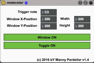 Changes the color of a floating window by a trigger note. Can be usefull in a live performance to signal a change of setup. |