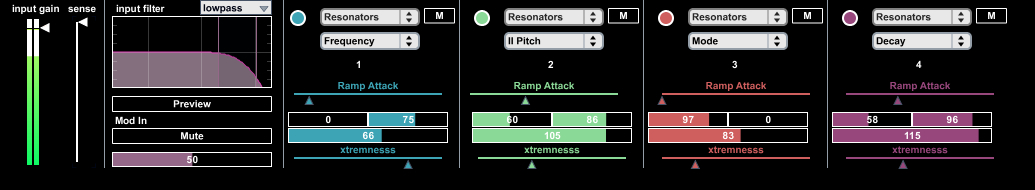 * "sense" slider works like a gate. if you lower the slider (sensitivity) modulation will only occur if the velocity is higher then a specific point.