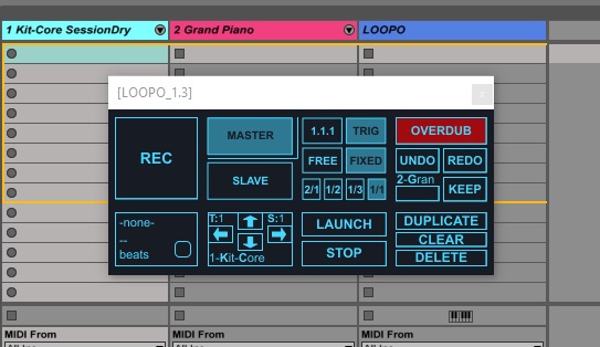 Thanks for Loopo. I find myself wanting a simpler device that works more like Live's Audio Looper but for midi. I like that Loopo auto places the data on a clip (which Looper doesn't do and can't do via midi mapping - only mouse drag and drop).