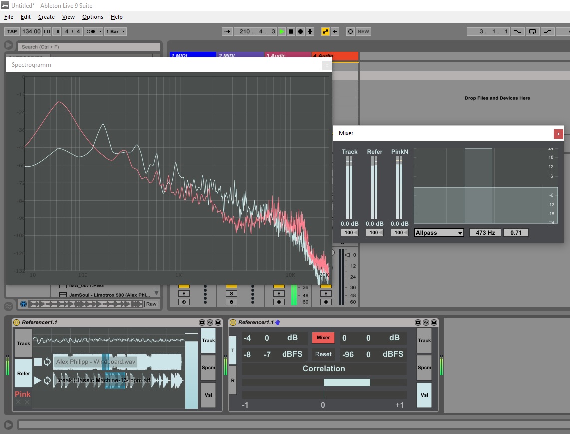 | Description: | Reference patch for referencing Your work to commercial tracks or pink noise. Just drop this device to end of master track chain and add up to three reference tracks WAV, AIFF or MP3 (my mack machine doesnt support mp3). Set loops at the places you want and compare sounds. Also may choose pink noise. Spectrum window is visible when You select other tracks. https://youtu.be/7CYtnh3qpEs Ver 1.2 Fixed Pink Noise loudness Added Spectrogramm linear or log selection Added Spectrum window resize https://youtu.be/vM-saGBMrbg Ver 1.1 Fixed RMS calculation. Added Mixer for volume and width control and Filter for checking defined freq. For some reasons patch downloaded from here is corrupt and have only 23kb. Check updated URL (optional) download link. |