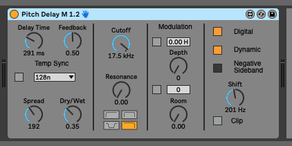 | Description: | Delay with static and dynamic pitch shifing effect. Also modulation and diffuse. Simple presentation with mono sine wave. https://youtu.be/0_hvLS9LMgE V.1.2 -UI update -Small fixes V. 1.1.1 UI updated to Live 10 native UI fixed Ver. 1.1 - Two pitch sifting modes (analog & digital) - UI improvement |
