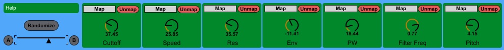 Description: Hi, Map the 7 knobs to your favorite automatable parameters. Twiddle the knobs (or Randomize) and press the A button. Twiddle the knobs again (or Randomize) and press the B button. Use the automatable slider to morph between these two presets.
