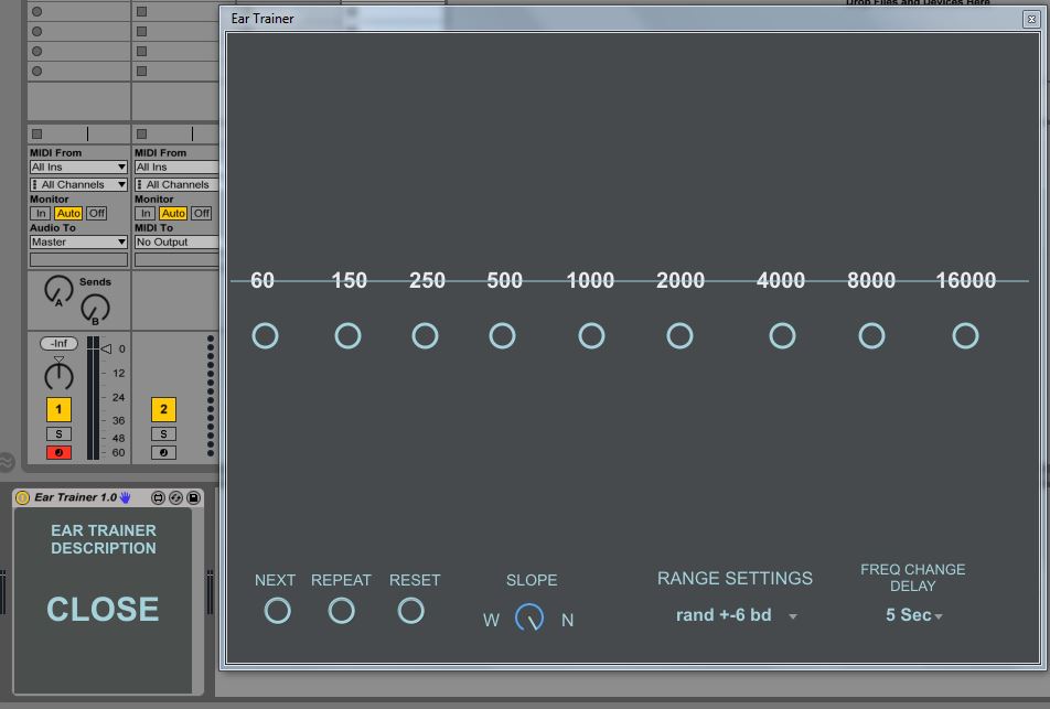 | Description: | MaxForLive patch that randomly cut or boost defined freq of incoming audio signal on 3 or 6 db. By hiting you try to recognize what freq it was. Video presentation https://youtu.be/yvAK60frcrE Contains ET and ET LE ver |