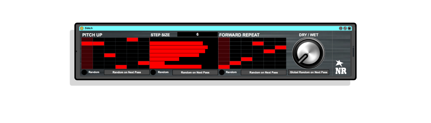Description: A step sequencing Glitch Pack machine. Step + Glitch = Stitch. Effects can be sequenced in time to create great beat edits, or can you randomise the sequence on each new pass (RONP) to get new events on each cycle. What also makes it special is the added step sequencer that controls the rate of the effects sequencer.