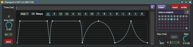 | Description: | This is an update to Rampon’n’off, a device that imposes complex, user-designed amplitude envelopes on any incoming audio. It was designed as part of ongoing, university laboratory research projects, and then further developed to expand functions of interest to both researchers and musicians. As before, patterns can be plotted with either complete precision or point-and-click ease, and saved patterns can be looped to produce self-designed amplitude modulation. Also, playback speed can still be synced to Live’s tempo and adjusted up to 10 times faster/slower without impacting stored values. The included pattern sequencer has been expanded to 16 steps, and it now indicates the current pattern in the sequence. A hold option also has been provided by toggling out of sequence mode during note playback. Additionally, intermediate slopes are now possible for log and exponential curves, and MIDI parameter assignments have been updated and optimized for Live 10. The laboratory will continue to provide technical support for the life of the product, and proposed modifications will be considered. More information can be found at http://www.psyc.jmu.edu/undergraduate/auditoryperception/software.html, where the device can be downloaded. |
