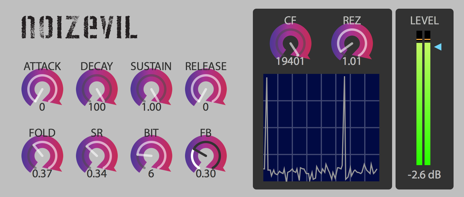| Description: | Chaotic noise synthesizer by Noizevil. http://www.noizevil.com/ Demo Movie. https://youtu.be/Fn_yxvFwJ1k |