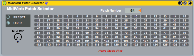 Quickly audition and select patches on the Alesis Midiverb 4 effects module. Also includes control for X/Y modulator. May be old school but if you own one and use Ableton you may find it handy. |