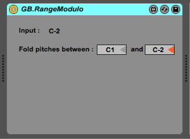 | Description: | GB.RangeModulo is a very simple MIDI device that folds MIDI notes inside a predefined range. If a note outside the range is played, it will be transposed back to the octave (or range) specified. |