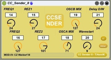 Description: This device allows you to control 8 freely assignable CCs. It can be used, for example, to easily control and automate parameters on external synths or other MIDI hardware using Live's Automation capabilities.