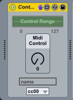 add the number of "midi control simple" that you need, Assign cc, define range of cc and group them in a rack, assign dial to macro... and that makes you a nice rackmidi.