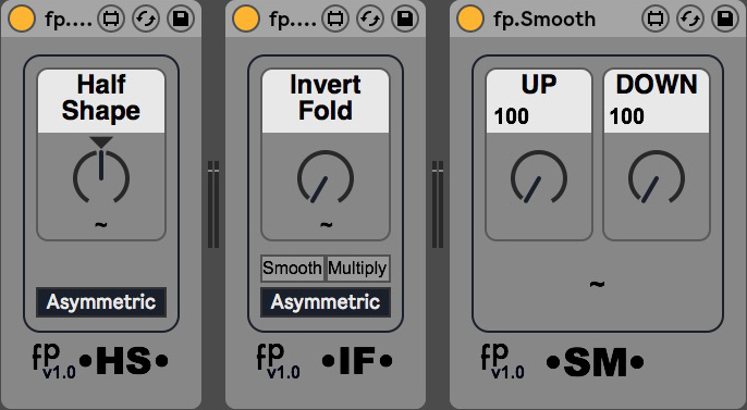 | Description: | Waveshaper bundle. fp.IF: invert wavefolder. It start to fold waveform from 0 instead of 1. fp.HS: reduces half shape of waveform. fp.SM: smooth (slew) waveform. fp.Curve: changes up and down signal from linear to exp or log. fp.S&H: sample and hold. fp.Offset: add (or subtract) offset to signal. fp.Pan: Panning randomly left & right in sync with Live. https://youtu.be/noPGh0ZhXLQ |