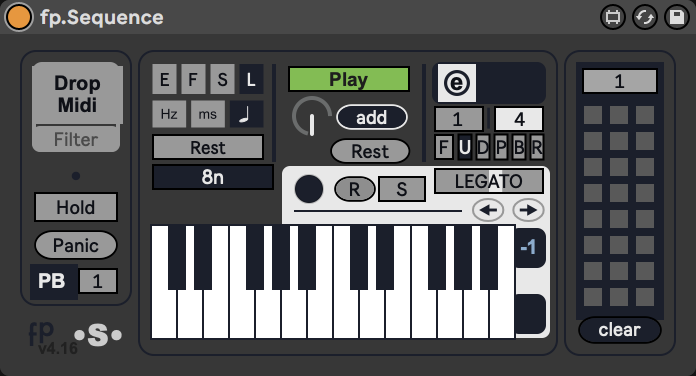 | Description: | Step sequencer with individual control inspired by various models like Ryk M-185, Metropolis, Numerology, etc… https://youtu.be/l4v-8pOzj9o Transposition, Velocity (with fade in or fade out in Repeat mode), Repeat, Step Length, Note Duration, Rest, Skip. Everything is randomizable. |