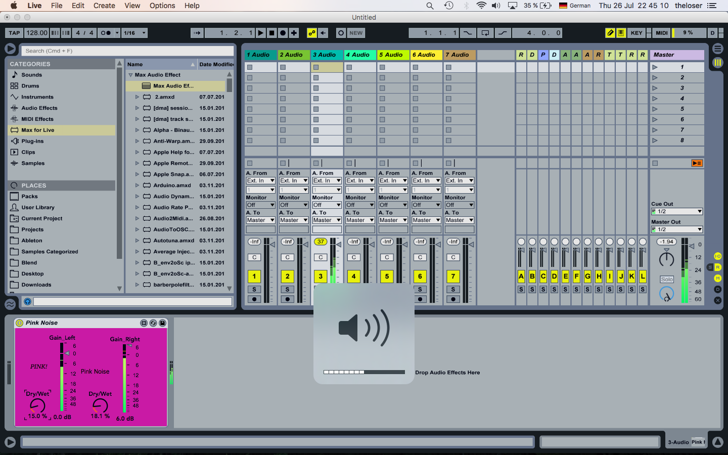 | Description: | Create Pink Noise and blend it with the input signal. The device works on stereo separation. left signal is divided from right signal. With the “Dry/Wet”-Knobs you can adjust the Mix between the input and the pink noise signal. With the “Gain”-Sliders you can set the volume of the pink noise independent in each stereo channel. |
