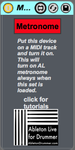 If you want to have the metronome in an Ableton Live set to be ON always when you open this set, just place this device onto a MIDI track and it will do this for you, even if the metronome was off when you saved and closed the set. |