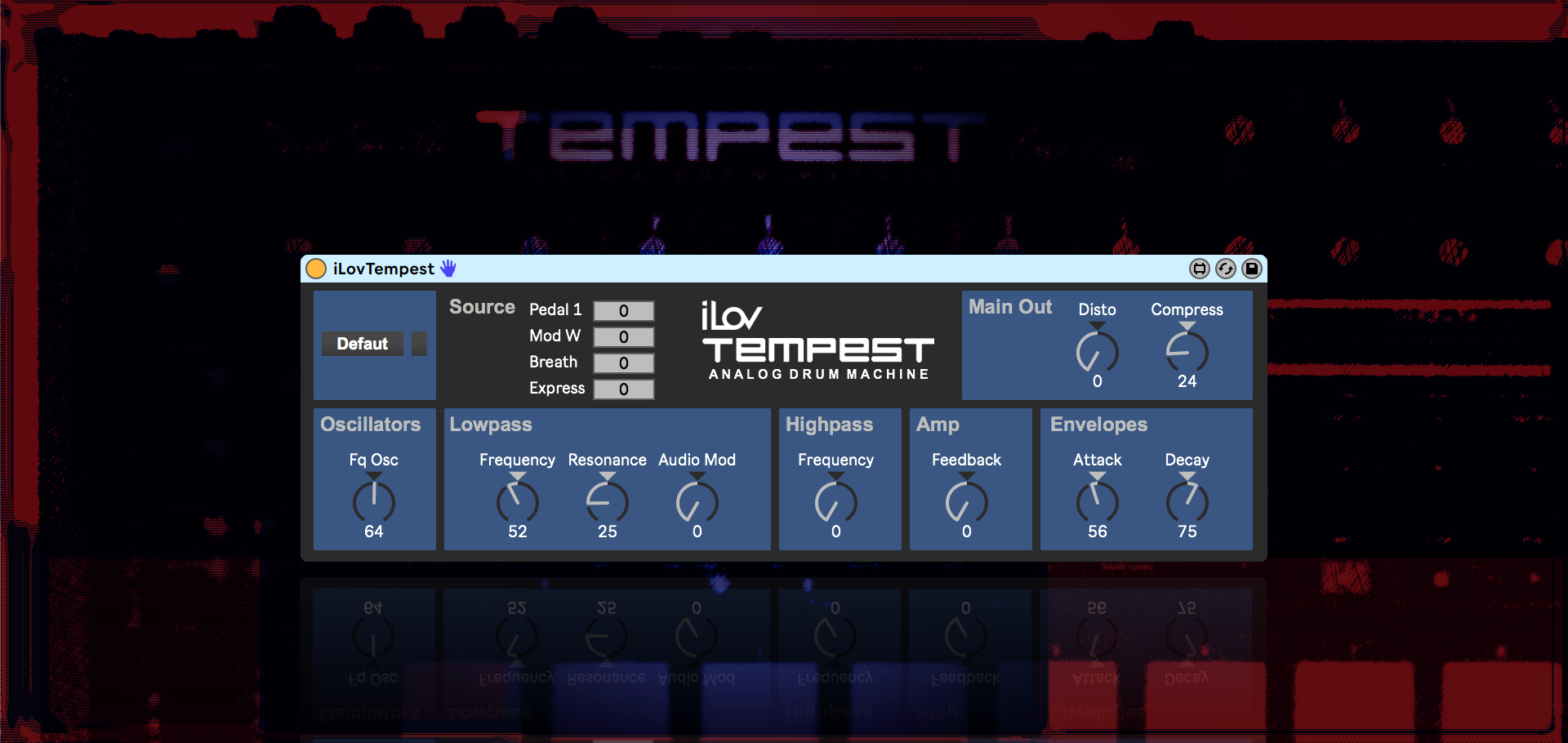 | Description: | iLov Tempest is a simple Max For Live midi plugin that allows you to control the "Beats" mode of your drum machine. Furthermore 4 "midi sources" sliders have been added (Pedal 1, Mod Wheel, Breath and Expression) to edit Sounds parameters by assigning them as a destination in the "Mod paths". Total Control with Push. |