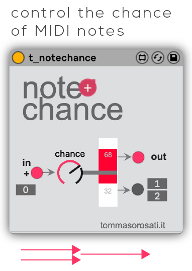 Description: Allow you to choose the probability of an incoming MIDI note to pass, with a single knob. You can decide the probability of passing and the probability that the note is sent to another note chance device within the liveset.