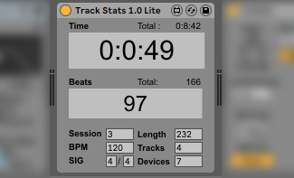| Description: | Track Stats Lite is an Ableton Live Project analysis system that quietly keeps track of your production habits. Video Explanation : https://youtu.be/U2lWQ0lPxY0 It records how long you've spent working during a particular tune writing session, how many beats you've played during that session, the total time of all sessions combined, and the total beats of all sessions combined. Stay tuned for the ADVANCED version which will have a LOT more stats. Track Stats is free or pay what you want. Bugs? Suggestions? https://discord.gg/MtandG5 |