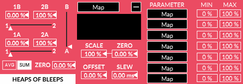 | Description: | This free device allows you to fade between different values and then map those values to parameters in Live. This may sound boring at first, but it allows you to mix together different audio-rate envelopes or LFOs by mapping them to the 1A, 2A, 1B, or 2B, parameters and then using the A, B and AB faders to fade between them. Automation can be averaged or summed when the fader is at the center. The summing can be done from a movable “zero” point. At 0% they add from the bottom up (this is good for envelopes). At 50% they add from the middle out (more like wave forms), and at 100% they subtract from the top. Scale the automation, also from a movable “zero” point. Offset the automation. Smooth the automation. Multimap fold-out tab for 7 extra MAP buttons with min and max control. All parameters accept audio rate modulation, except parameters in the multi-map fold-out. -Heaps of Bleeps |