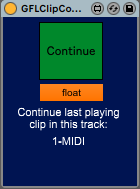 Move this tool in a midi-track, play a clip in this track, stop it in any way. By clicking the "Continue"-button the clip will resume from the position it stoped. You can control the button by midi or key too.